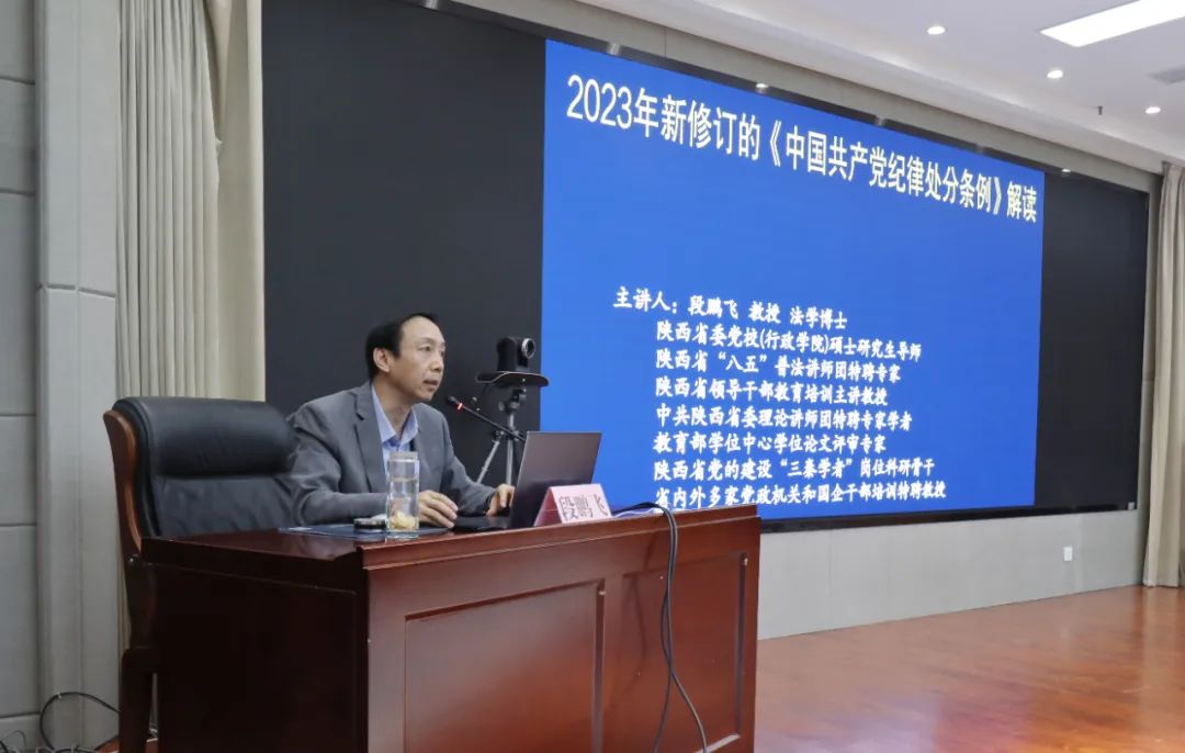 为深入开展党纪学习教育,4月19日下午,bet365体育投注举办“自然资源大讲堂”,邀请省委理论讲师团特聘专家、省委党校(陕西行政学院)段鹏飞教授,以“2023年新修订的《中国共产党纪律处分条例》解读”为题作专题讲座。在家厅领导参加了专题讲座。